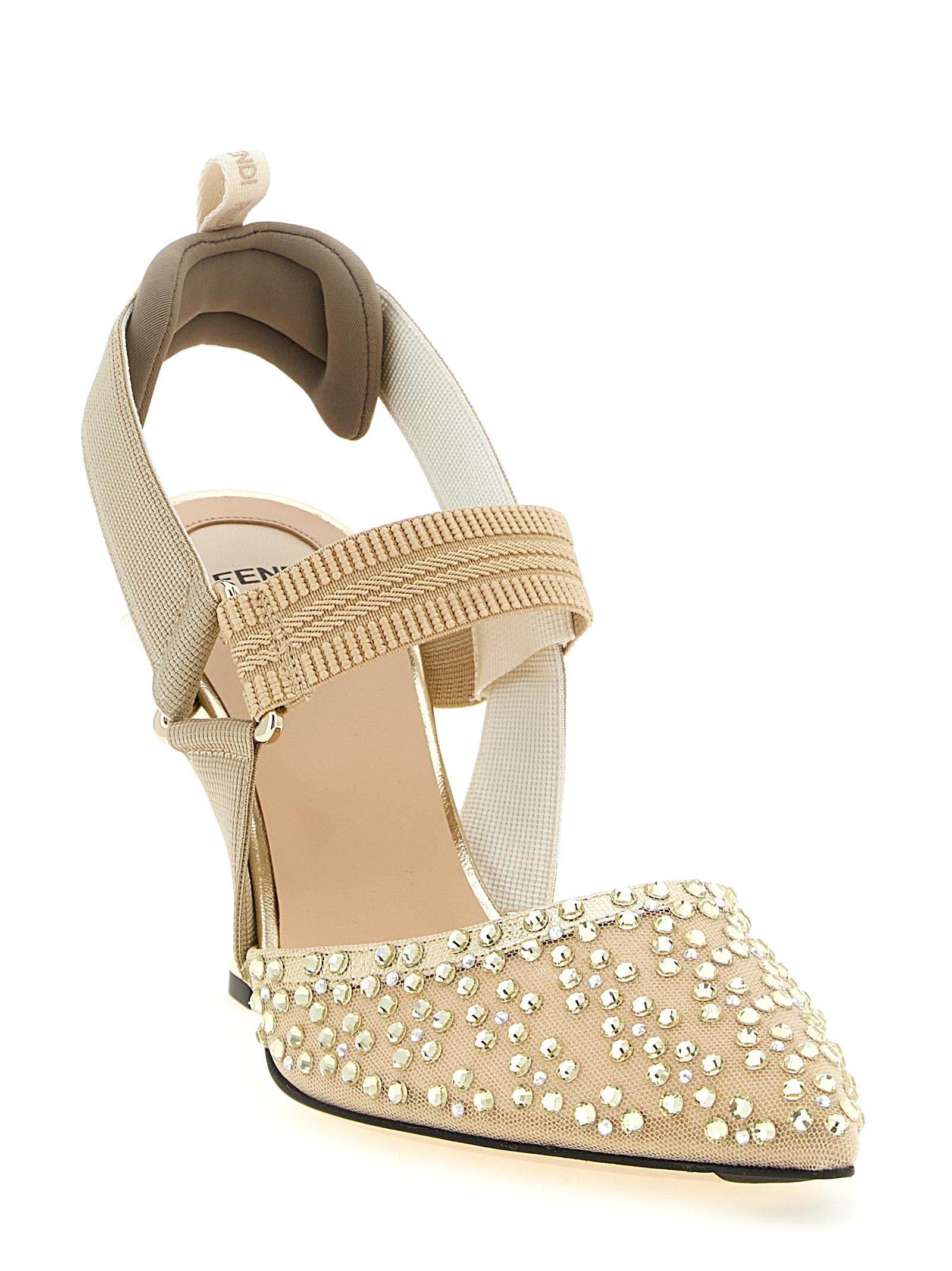 ‘colibrì’ mesh slingbacks with crystal application, Pointed model, Back strap with padded pad and trekking hook, Elastic top strap, Galvanized heel, Leather sole with rubber island.