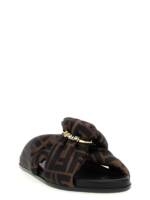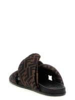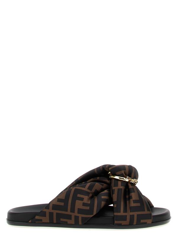 Fendi feel’ satin slides with iconic ff pattern, Double padded band and decorative d-ring buckle with three-dimensional fendi lettering, Leather insole, Leather sole. Size and Fit – EU WOMEN