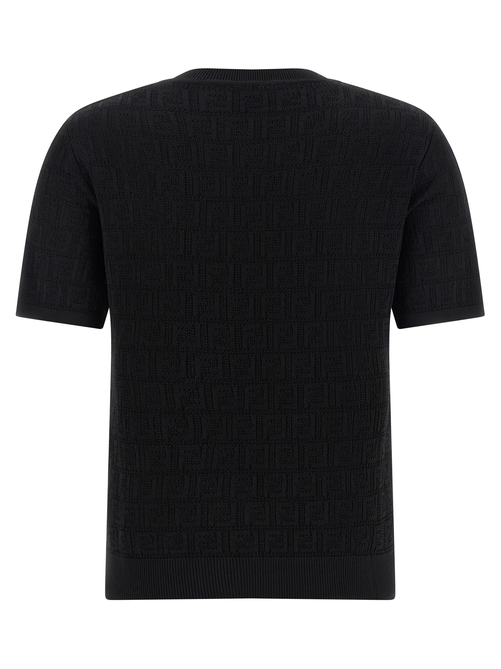 Cotton yarn and viscose sweater with all-over ff pattern intarsia, Crew neck, Short sleeves, Side slits. Size and Fit – true to size fit