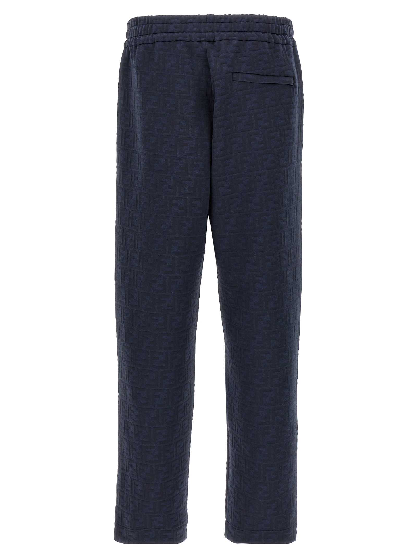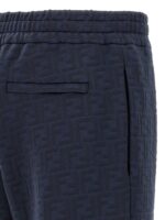 Stretch cotton blend joggers with all-over ff monogram jacquard logo, Adjustable drawstring elastic waistband, Pockets, Straight leg. Size and Fit – true to size fit