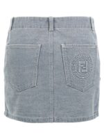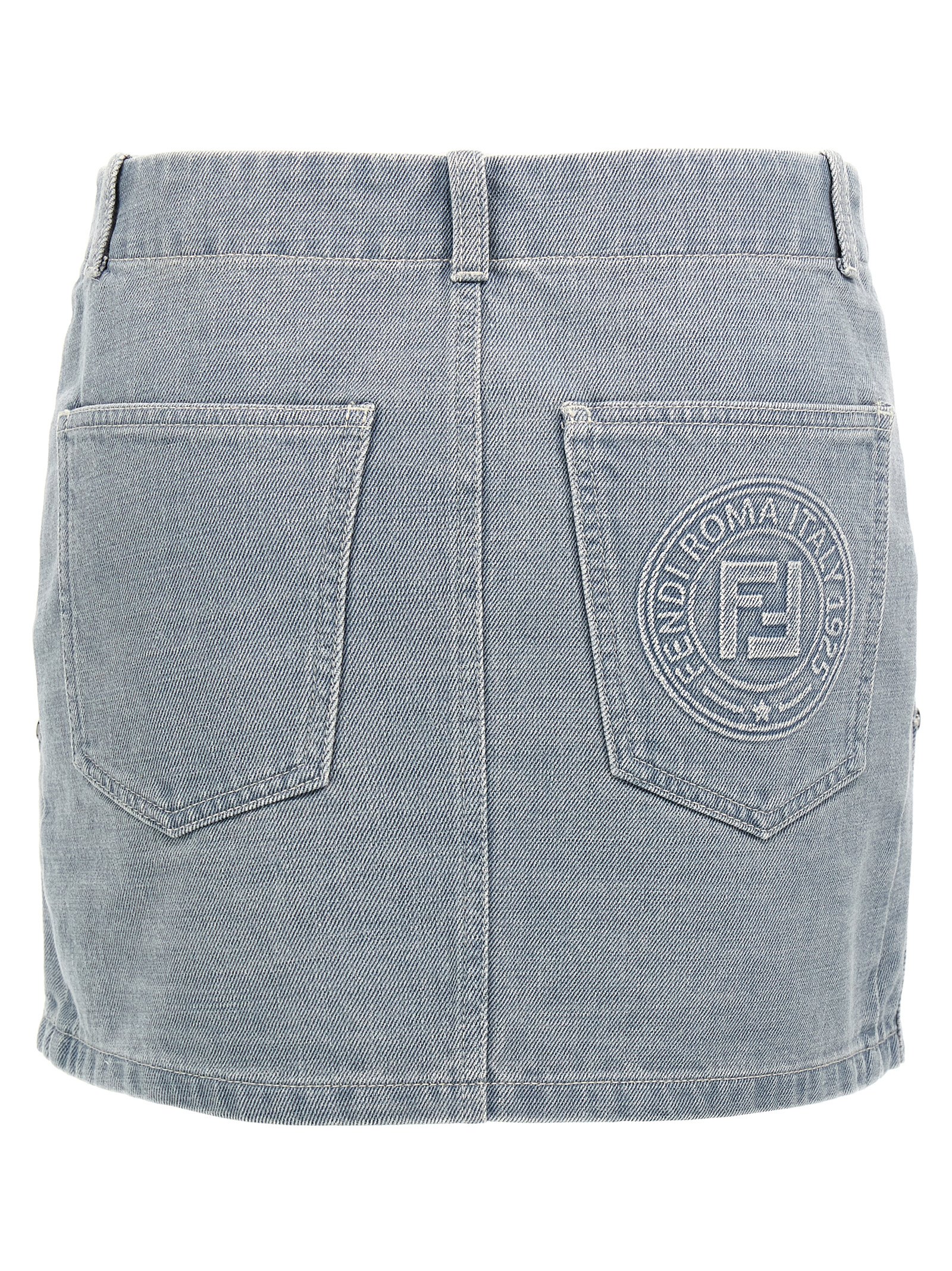 ‘go-to’in denim di cotone, Stampa ‘fendi stamp 1925’ embossed miniskirt at the back, Front zip closure, Pockets. Size and Fit – true to size fit