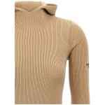 Ribbed wool and silk hooded dress with long sleeves and slits. Size and Fit – True to size fit