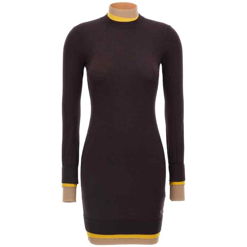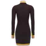 ‘layering’ dress in stretch fabric with overlapping effect details, High neck, Long cuffed sleeves, Jacquard logo. Size and Fit – True to size fit