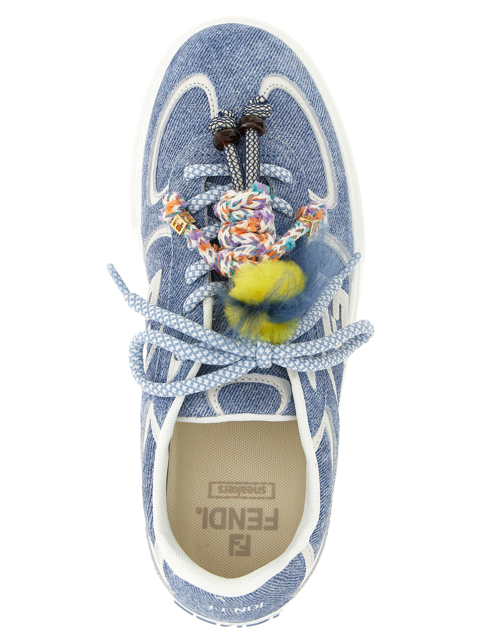‘fendi match’ denim-effect printed suede sneakers with contrasting smooth leather details, Embossed logo on the heel, Embossed logo_x000d_