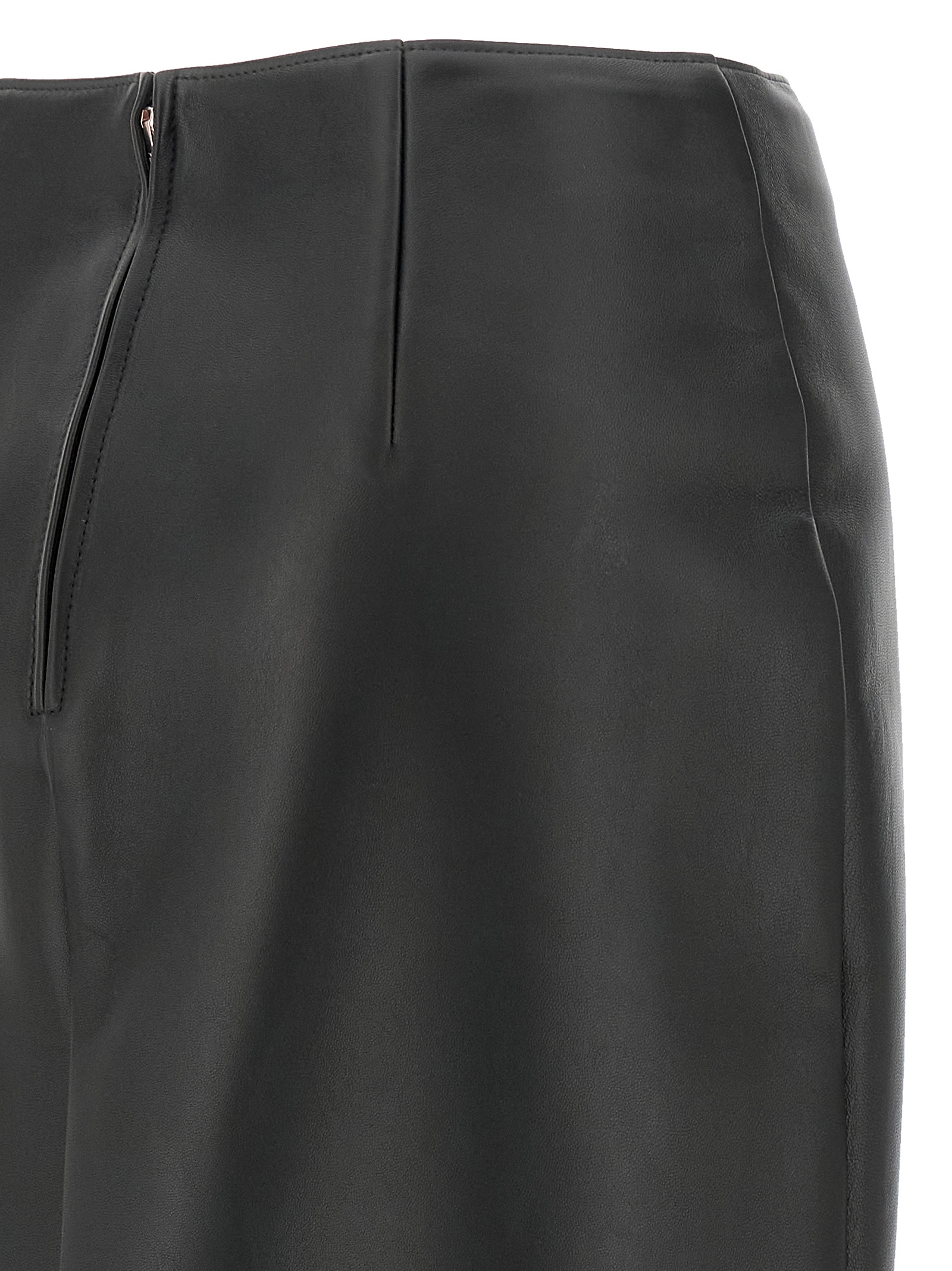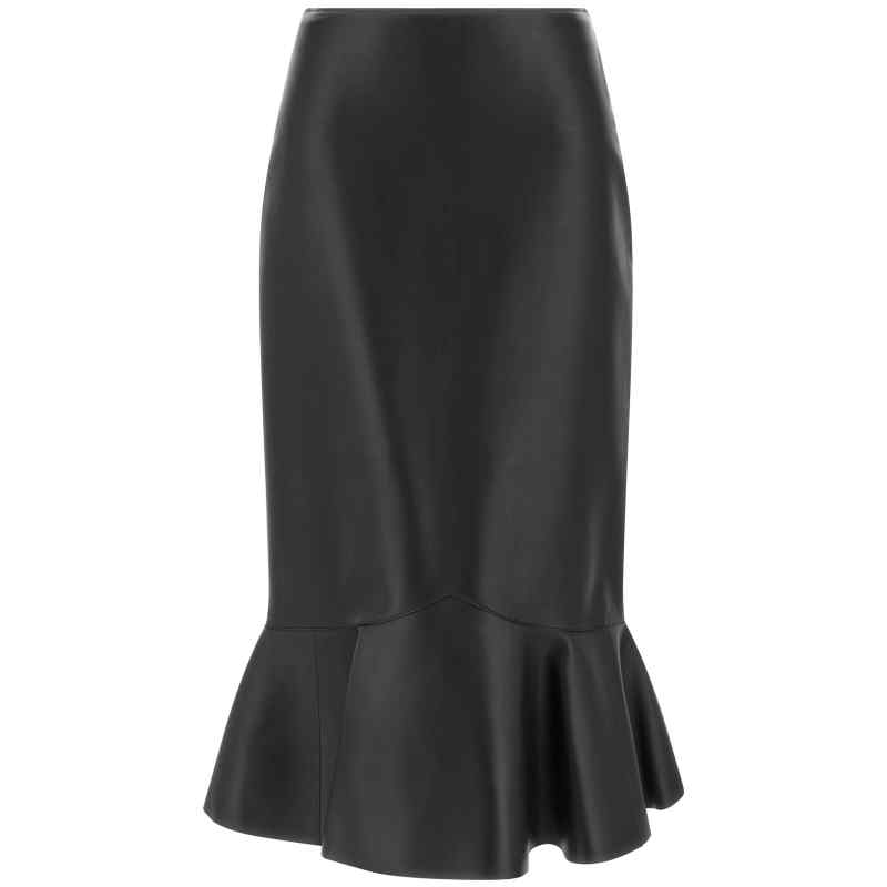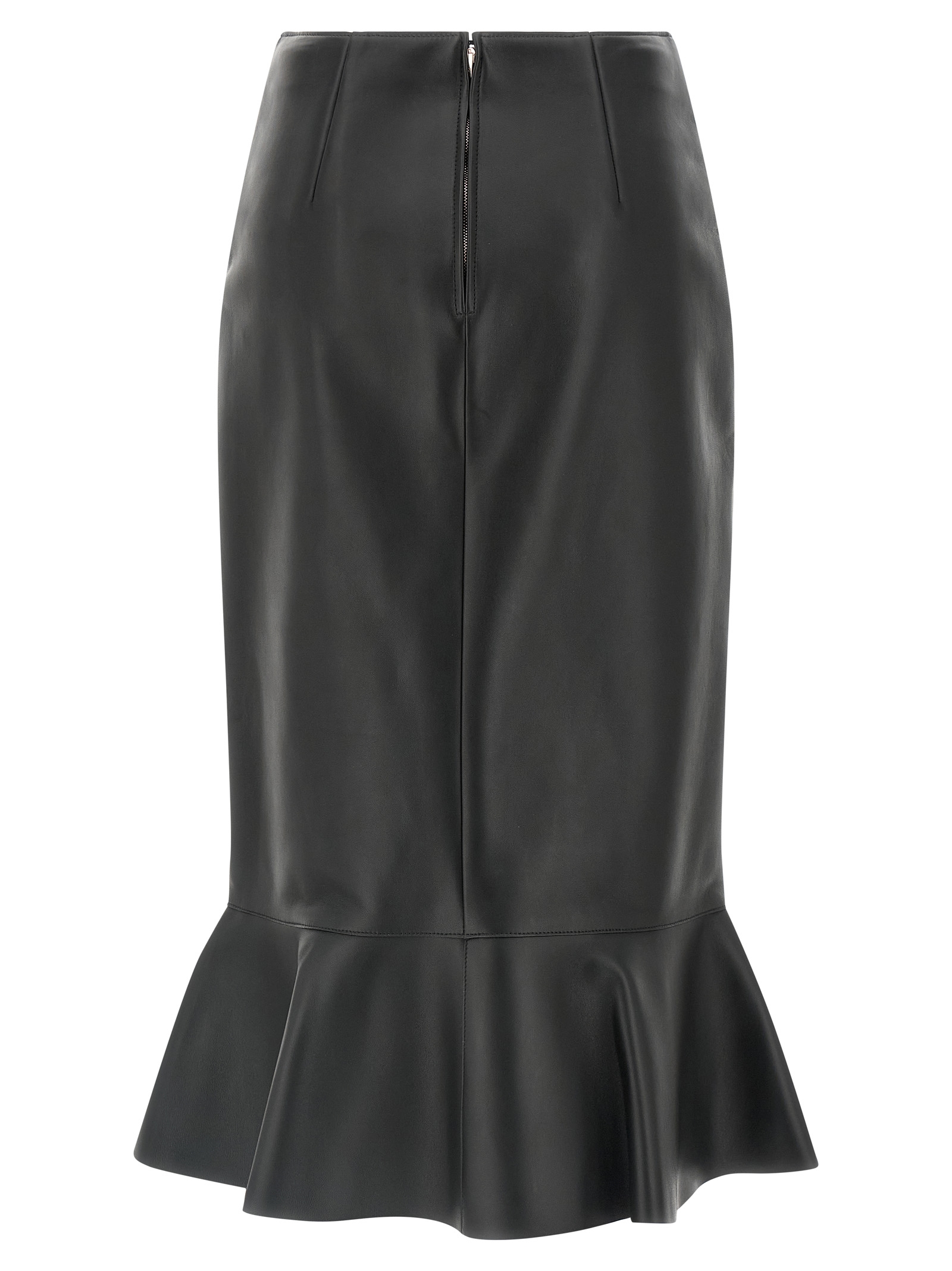 Nappa midi skirt, High waist, Flared peplums silhouette with flounces, Back zip closure, Lining. Size and Fit – True to size fit
