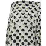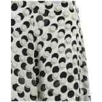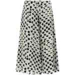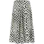 Jacquard polka dot patterned silk midi skirt, Flared silhouette, Side zip closure, Lining, Asymmetrical hem. Size and Fit – true to size fit