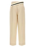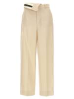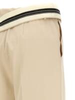 Wool and cotton gabardine trousers, Zip and hook closure, Asymmetrical waist with ‘fendi roma’ logo tape, Ironed crease, Pockets. Size and Fit – Carrot fit