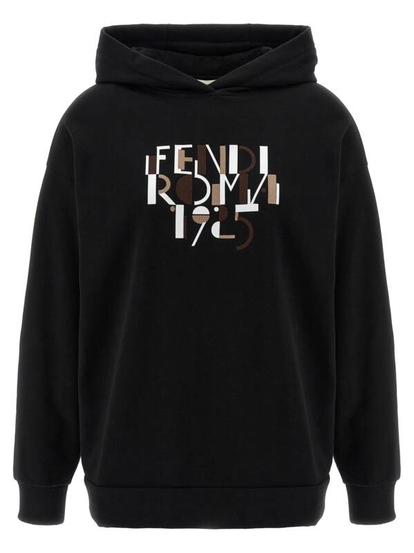 ‘fendi roma’ cotton hoodie with dropped shoulder pattern, Front print and logo embroidery detail, Long sleeves with cuffs. Size and Fit – True to size fit