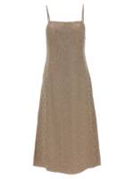 Satin midi dress with floral jacquard, Square neckline, Thin adjustable straps, Zip closure and side slits. Size and Fit – true to size fit
