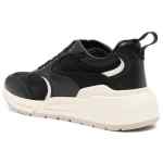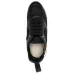 almond-toe panelled leather sneakers from Ferragamo featuring jet black, calf leather, smooth grain, panelled design, mesh detailing, pull-tab at the heel, branded insole, almond toe, front lace-up fastening and chunky rubber sole. Gancini sneakers