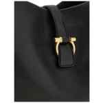 black Gancini buckle debossed internal logo gold-tone hardware magnetic fastening two flat shoulder straps internal zip-fastening pocket Medium leather shoulder bag