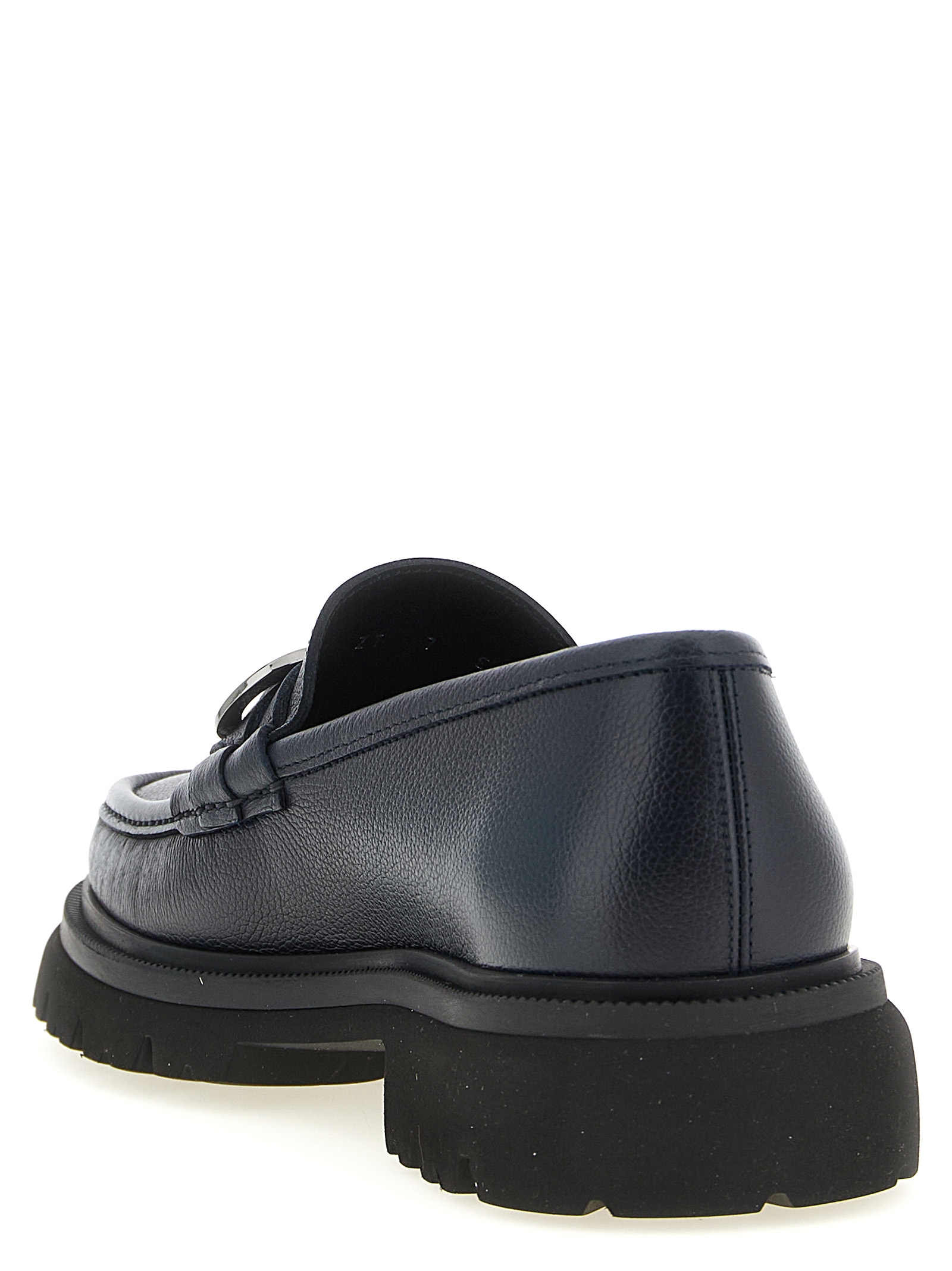 ‘cocoon’ hammered leather loafers with front metal ‘gancini’ detail, Rubber sole.