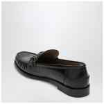 Ferragamo moccasin in crocodile effect leather in Dark Brown color, characterized by gold-colored metallic hardware with an engraved F on the front, logoed insole, and leather sole.