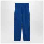 Ferragamo cargo pants in electric blue Lyocell, characterized by a front closure, belt loops at the waist, two side welt pockets, two cargo pockets with flap, and two back welt pockets.