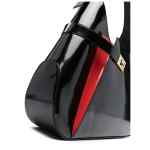 black, red leather patent finish tonal stitching adjustable shoulder strap contrasting panel detail asymmetrical pocket to the front Gancini buckle main compartment internal zip-fastening pocket internal logo tag full lining gold-tone hardware open top with magnetic strap fastening This piece comes complete with a protective dust bag.