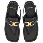black lambskin leather lining gold-tone hardware Gancini buckle thong strap side buckle fastening branded leather insole leather sole Gancini leather thong sandals