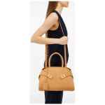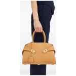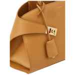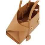 camel brown calf leather smooth grain leather tag two rolled top handles Gancini buckle main compartment internal zip-fastening pocket metal feet silver-tone hardware Hug small leahter tote bag