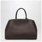 Ferragamo medium handbag in brown and ochre bicolour leather featuring side gussets with gold Gancini buckles, ring closure, keychain charm and lined zip pocket.