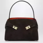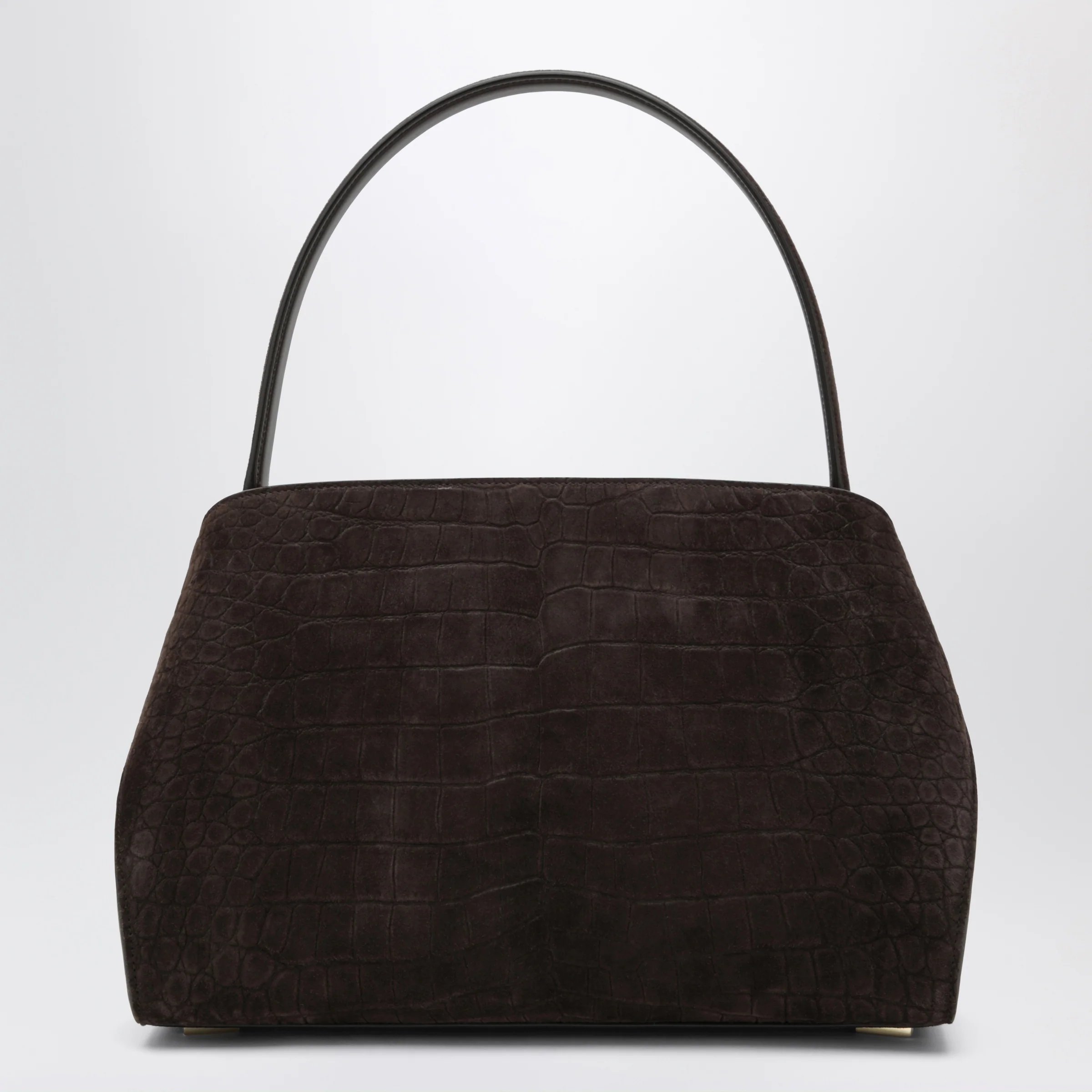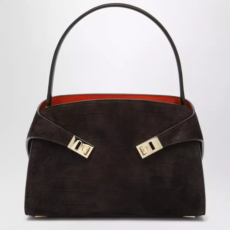 Ferragamo medium shoulder bag in crocodile-effect suede leather