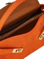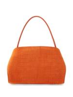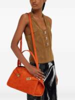 light siena alligator-print gold-tone hardware central zip-compartment adjustable and removable shoulder strap toggle-fastening Hug small leather tote bag.