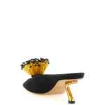‘safi’ satin mules, Slightly squared and rounded toe with three-dimensional ornament consisting of colored baguettes and front glass crystals, Gilded sculptural heel, Leather sole. Size and Fit – Us ferragamo size – c fit
