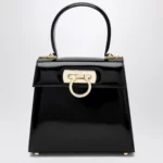 Ferragamo Small black leather top-handle bag with Gancini closure