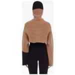 colour-block ribbed jumper from Ferragamo featuring beige, black, wool-cashmere blend, knitted construction, ribbed knit, colour-block design, slouchy hood, long sleeves and cropped. Cashmere cropped hoodie