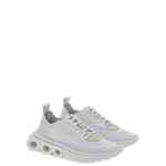 Gancini-plaque low-top sneakers from Ferragamo featuring knitted upper, Gancini plaque, logo-embossed tongue, logo at the sole, branded heel counter, panelled design, pull-tab at the heel, front lace-up fastening, round toe, flat rubber sole, branded insole, optical white and calf leather. Nima sneakers