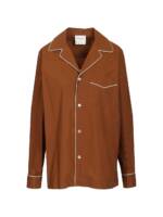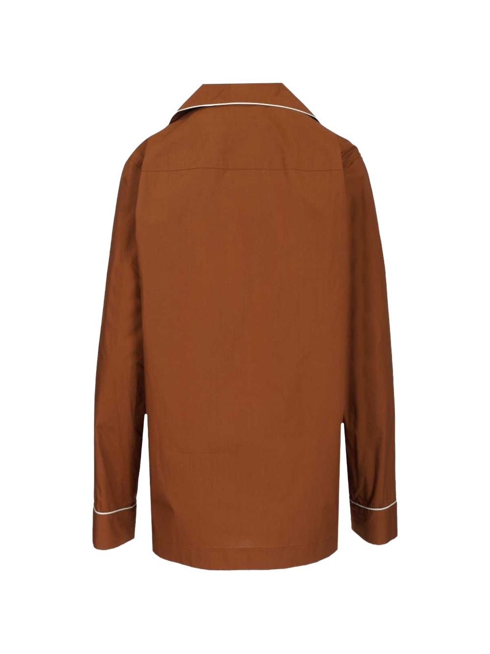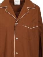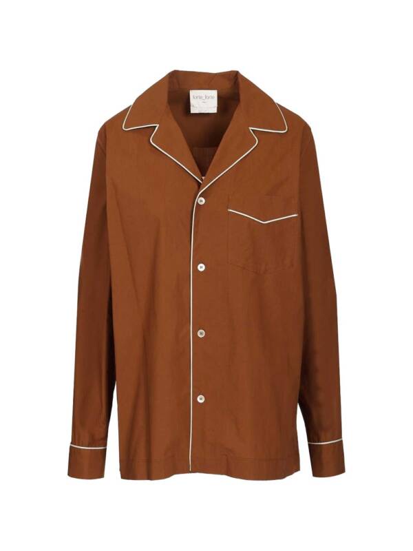 chocolate brown, button fastening, chest pocket, piping trim, long sleeves Cotton pajama shirt.