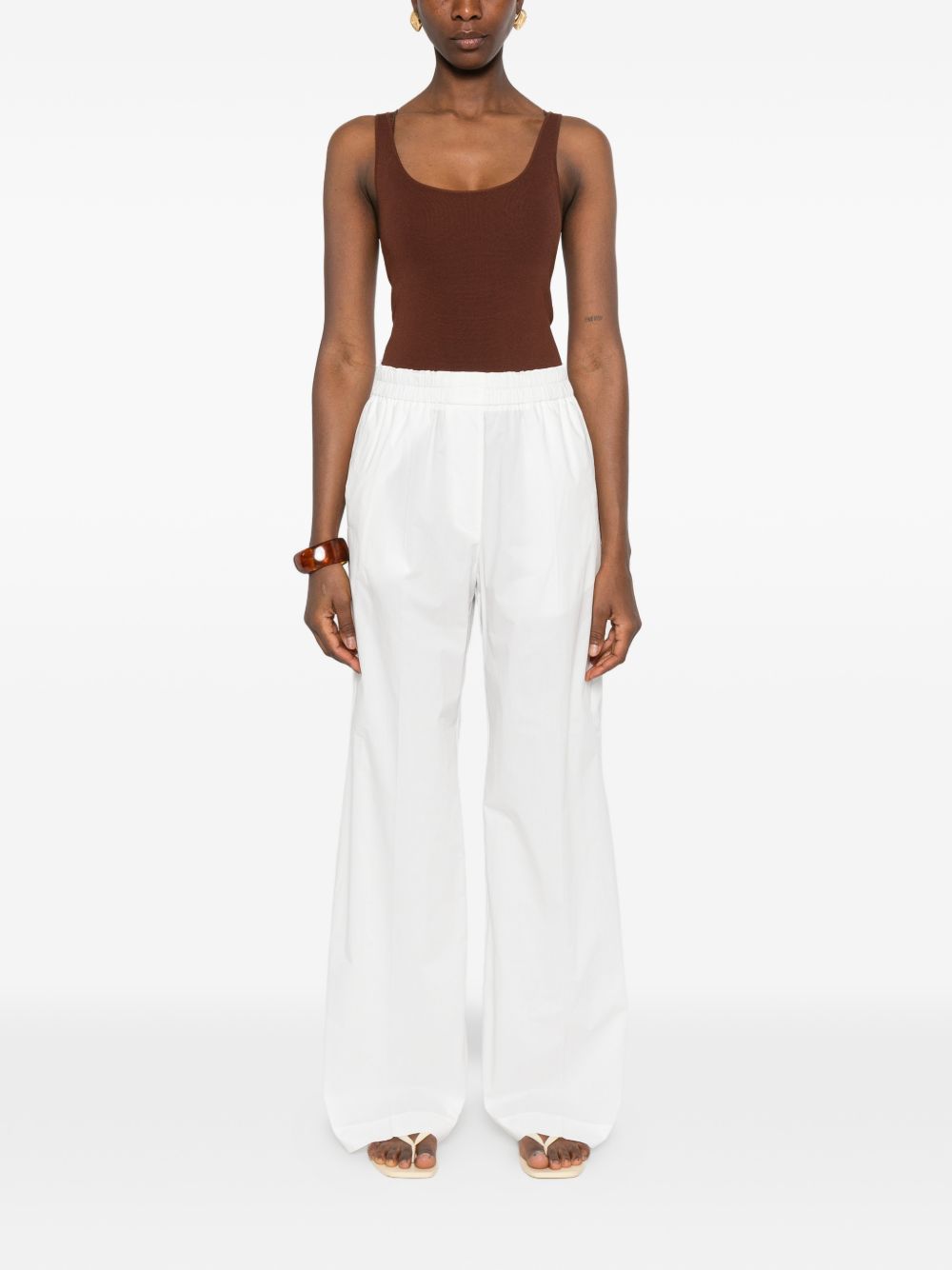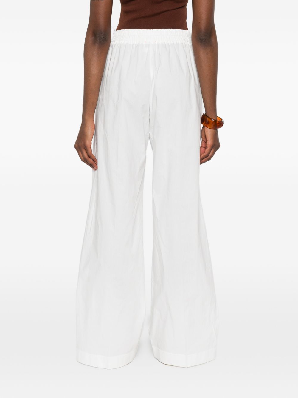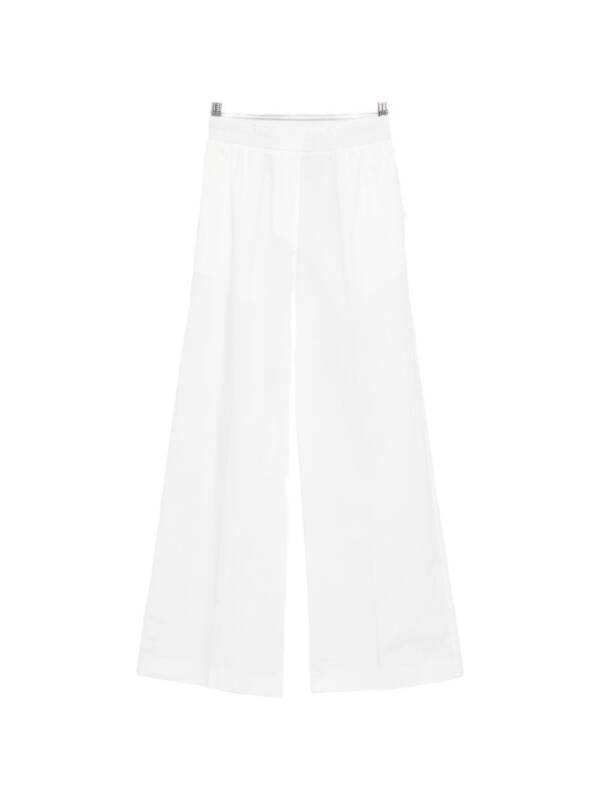 white wide leg elasticated waistband Cotton trousers.