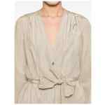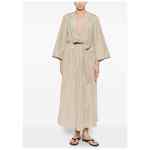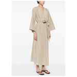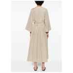 beige V-neck button fastening belted waist Cotton blend midi dress.