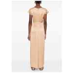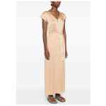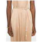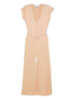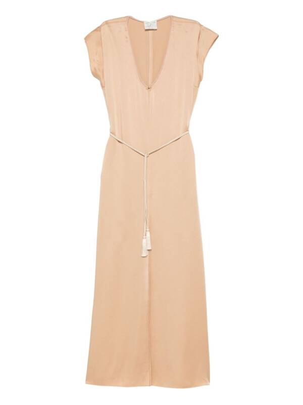 beige V-neck tie tassel detail short sleeves Midi dress.
