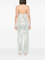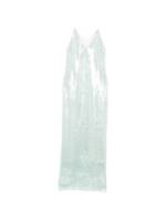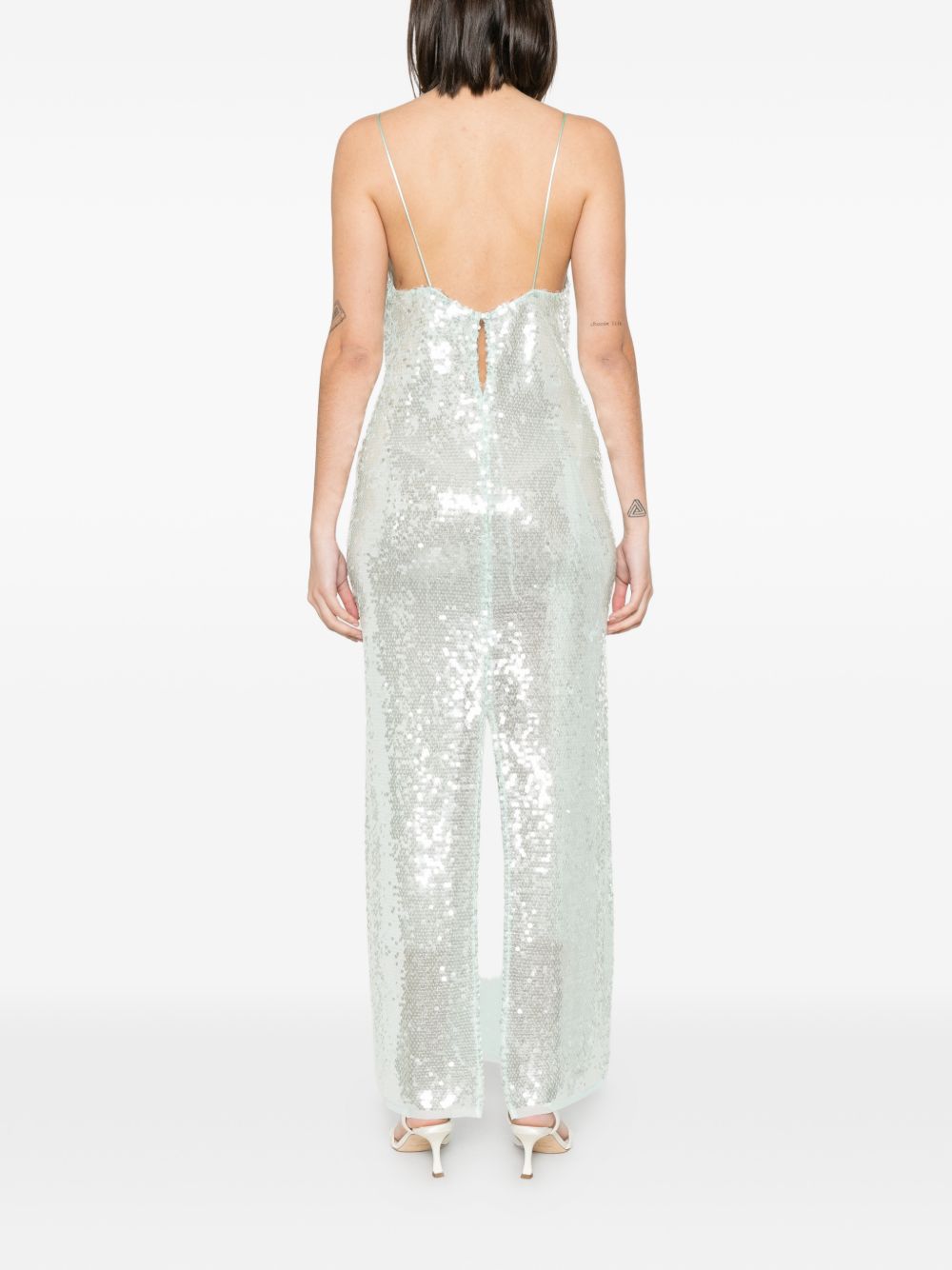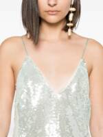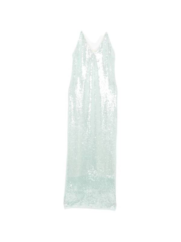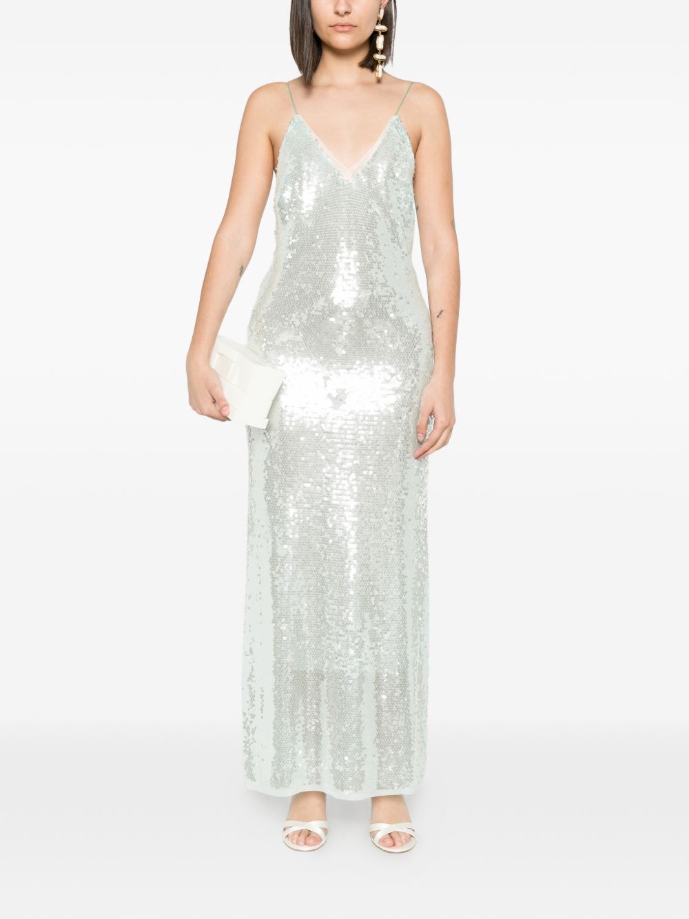 green sequined fabric V-neck spaghetti straps maxi length Sequined slip dress.