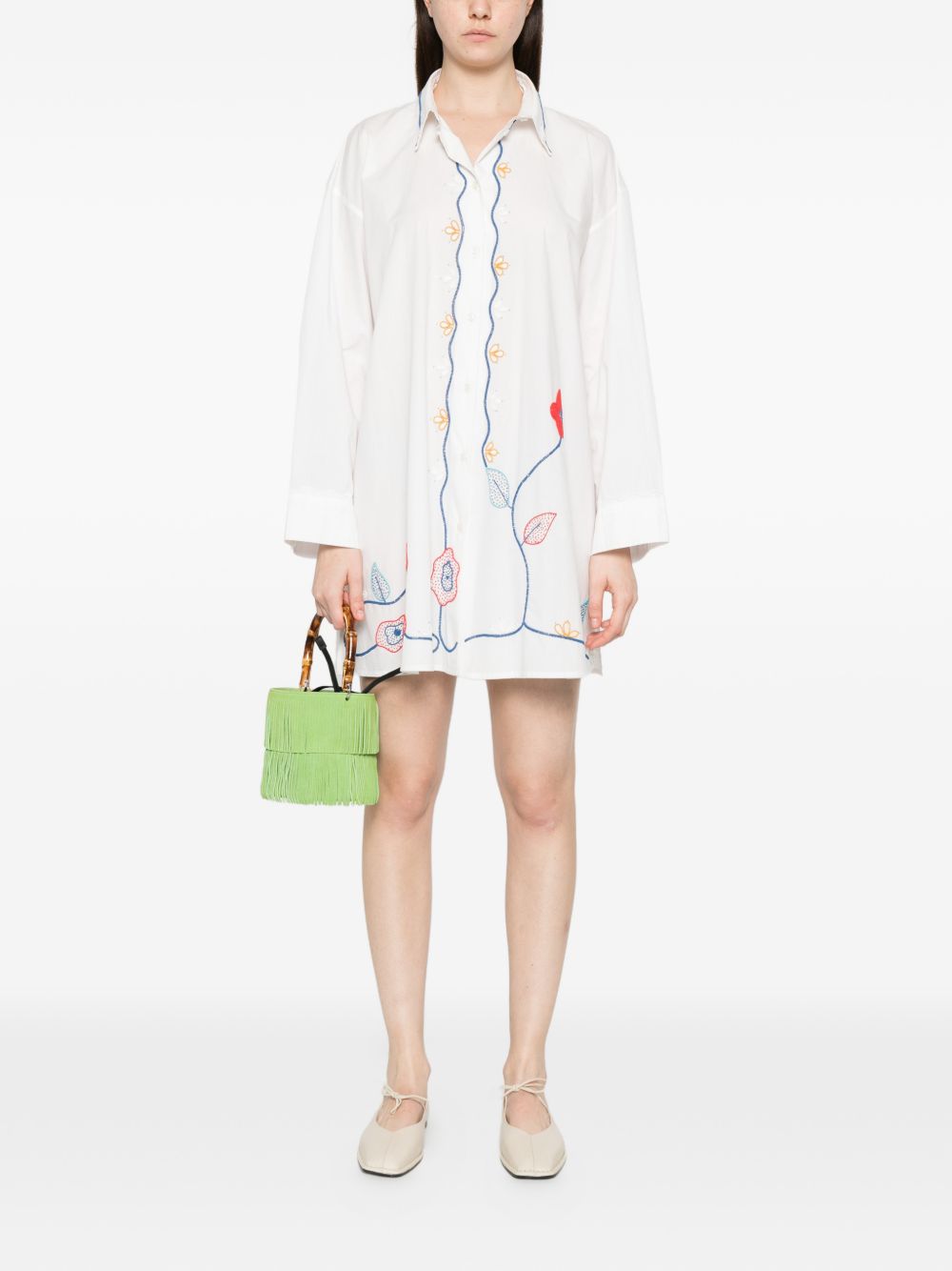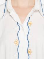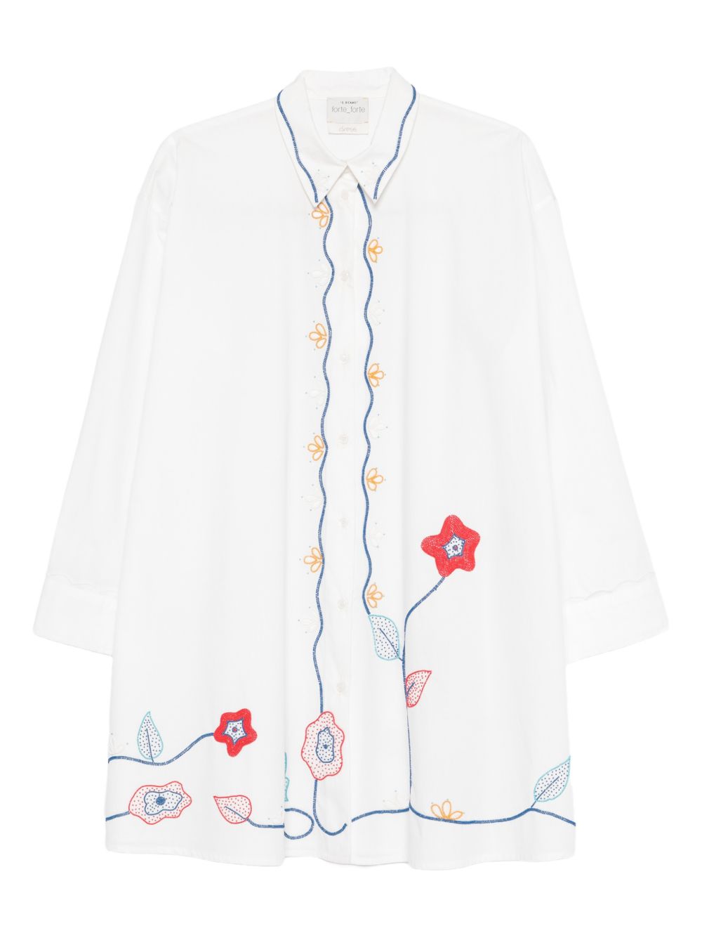 white embroidered detailing floral print classic collar front button fastening three-quarter sleeves Embroidered cotton shirt.