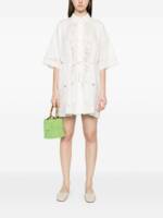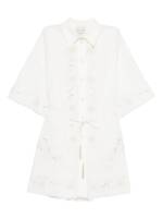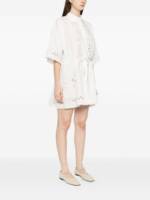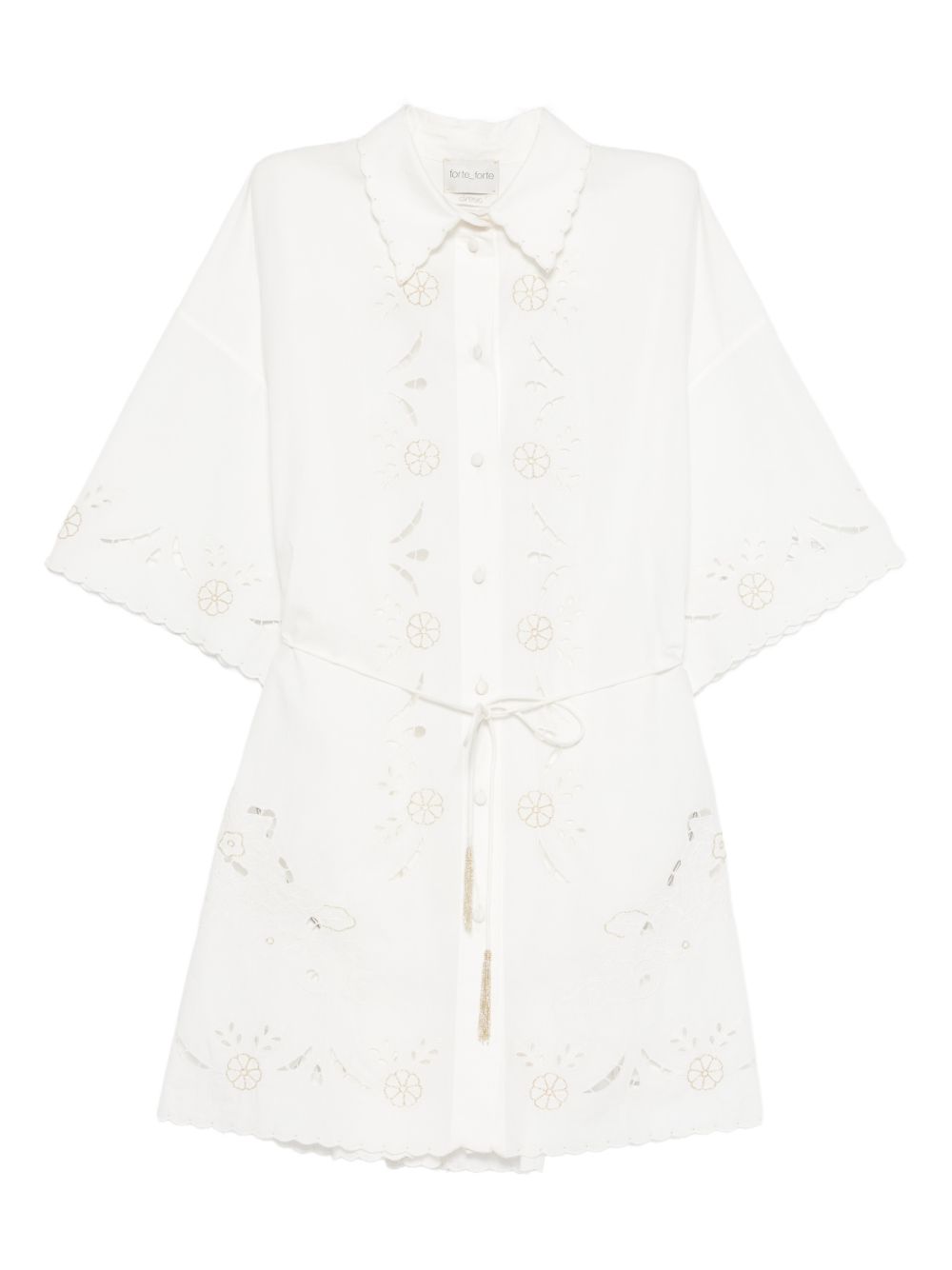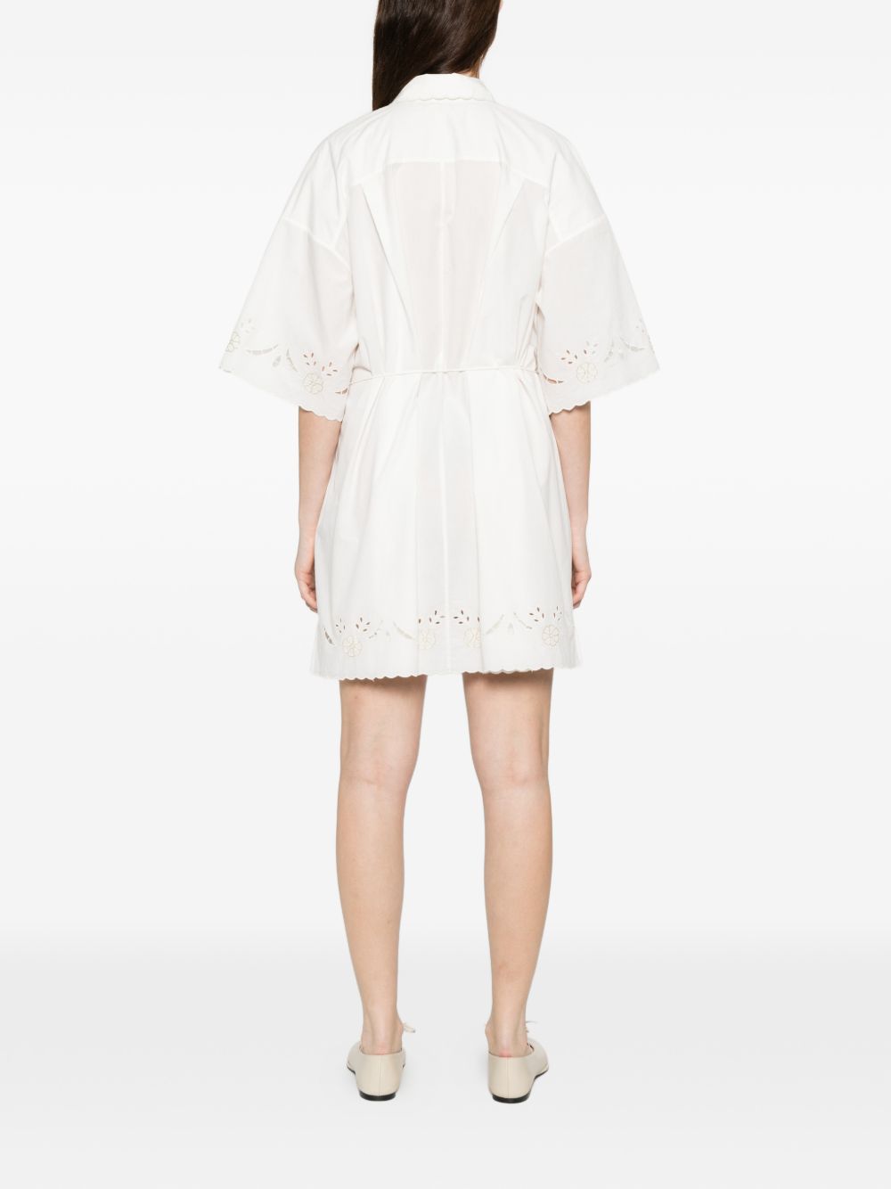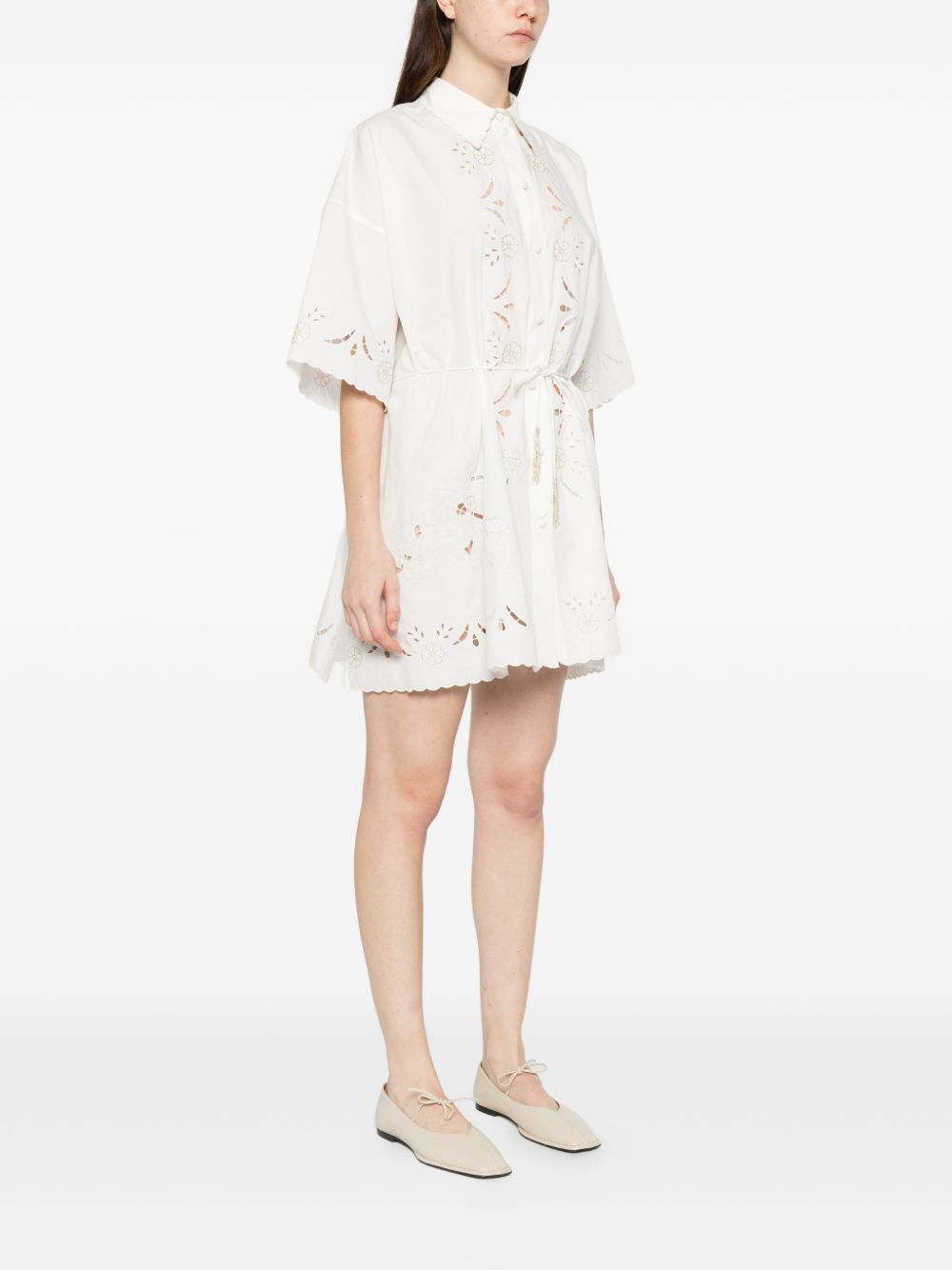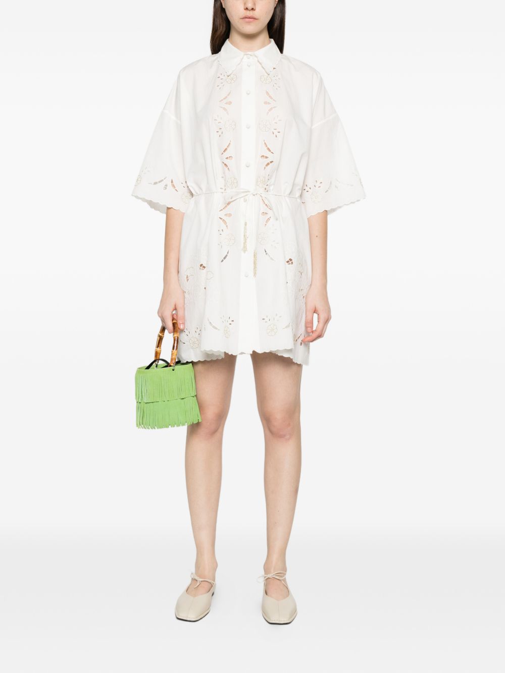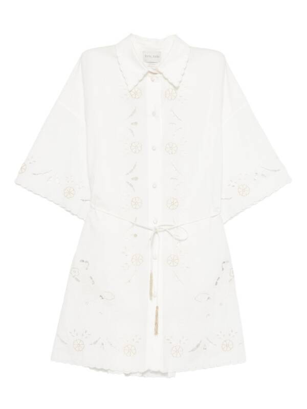 crystal floral embroidery scalloped hem button fastening tie belt tassel detail Embroidered cotton shirtdress.