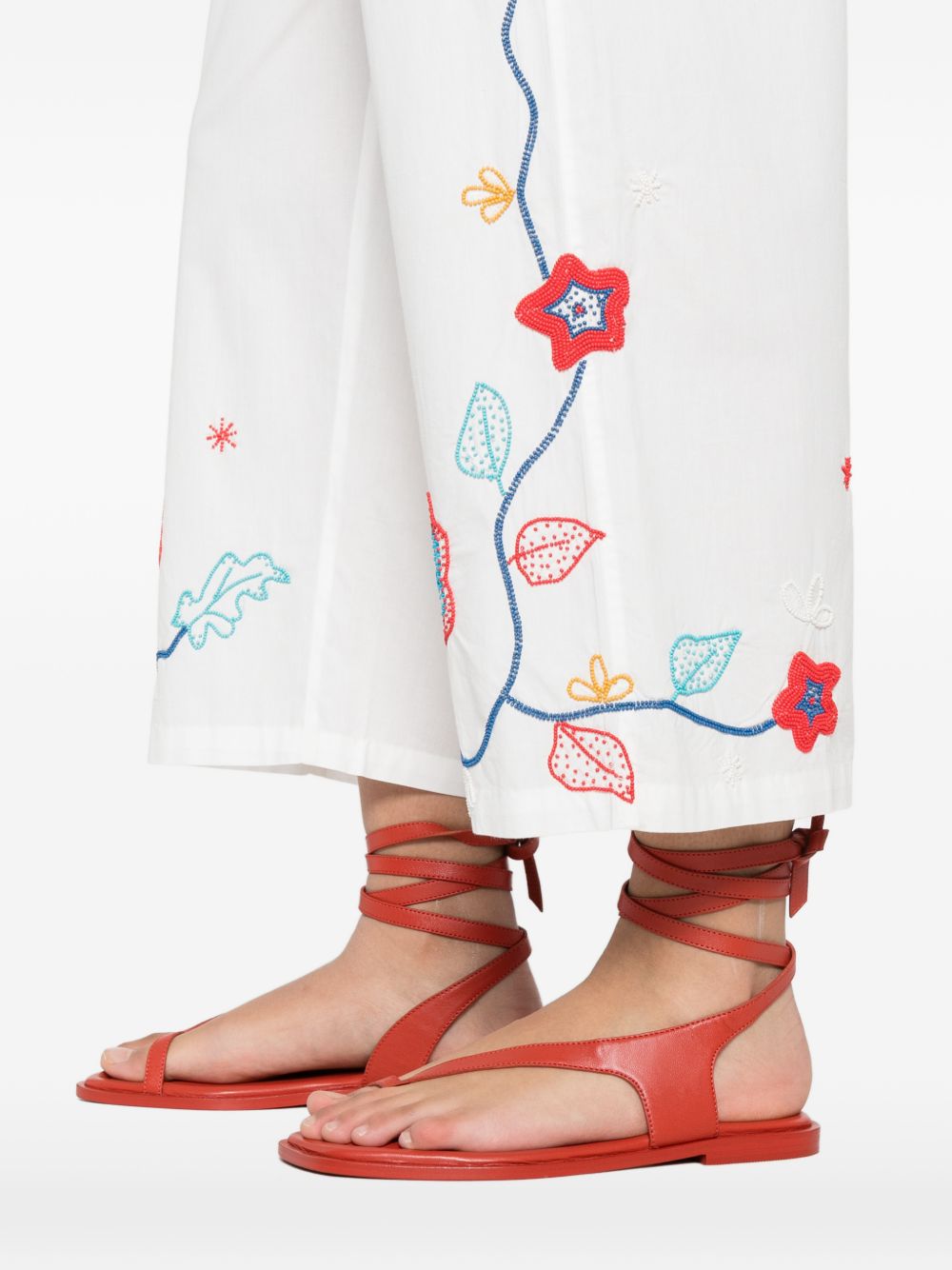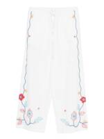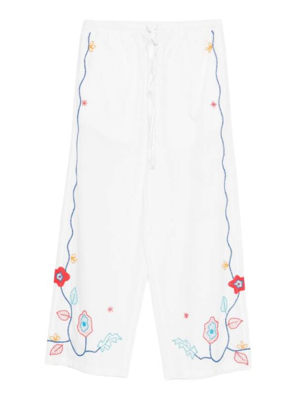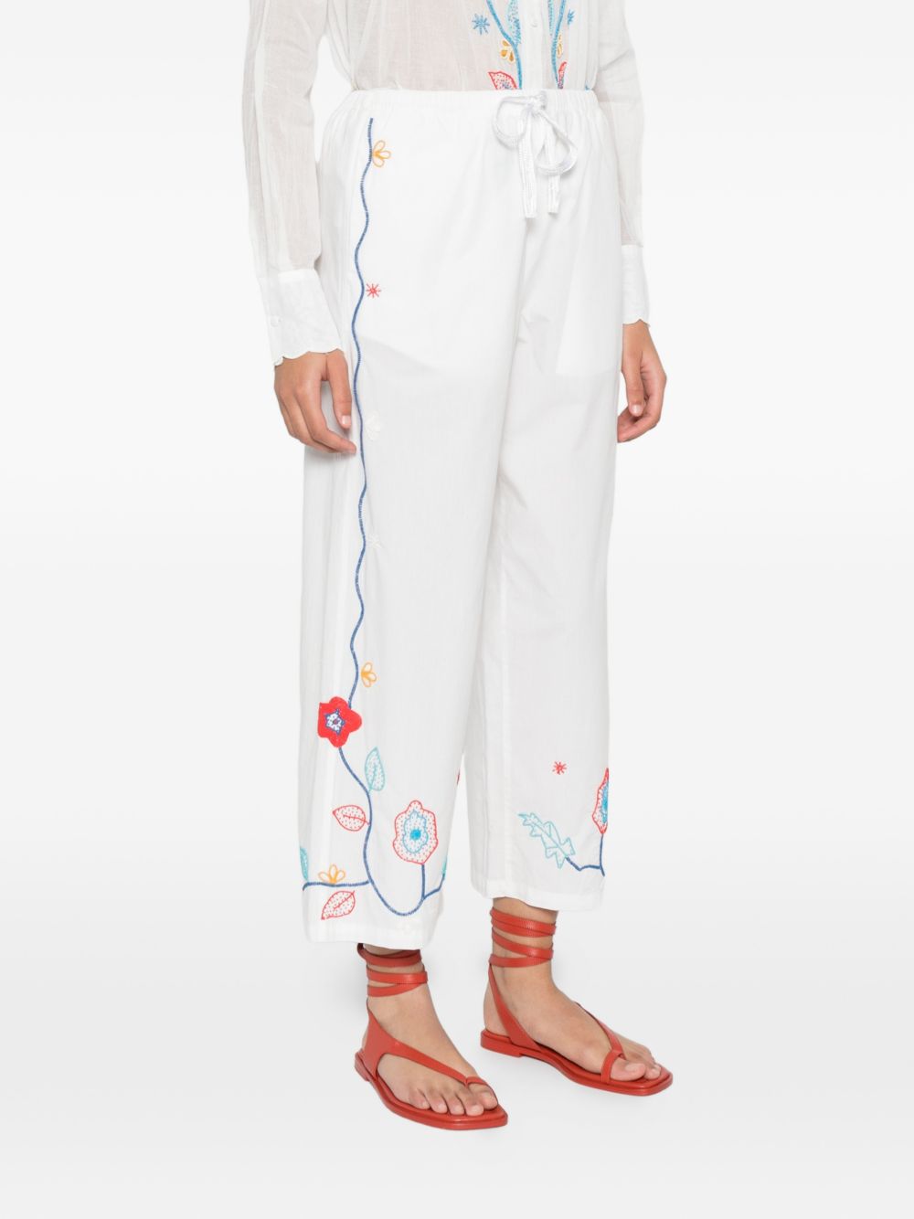 crystal floral embroidery drawstring fastening cropped leg side seam detail relaxed fit Embroidered cotton trousers.