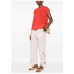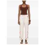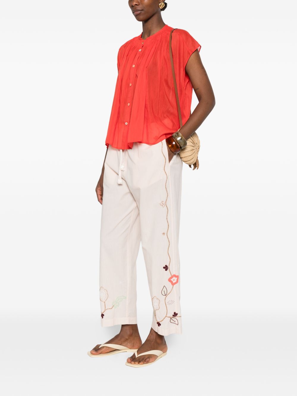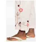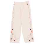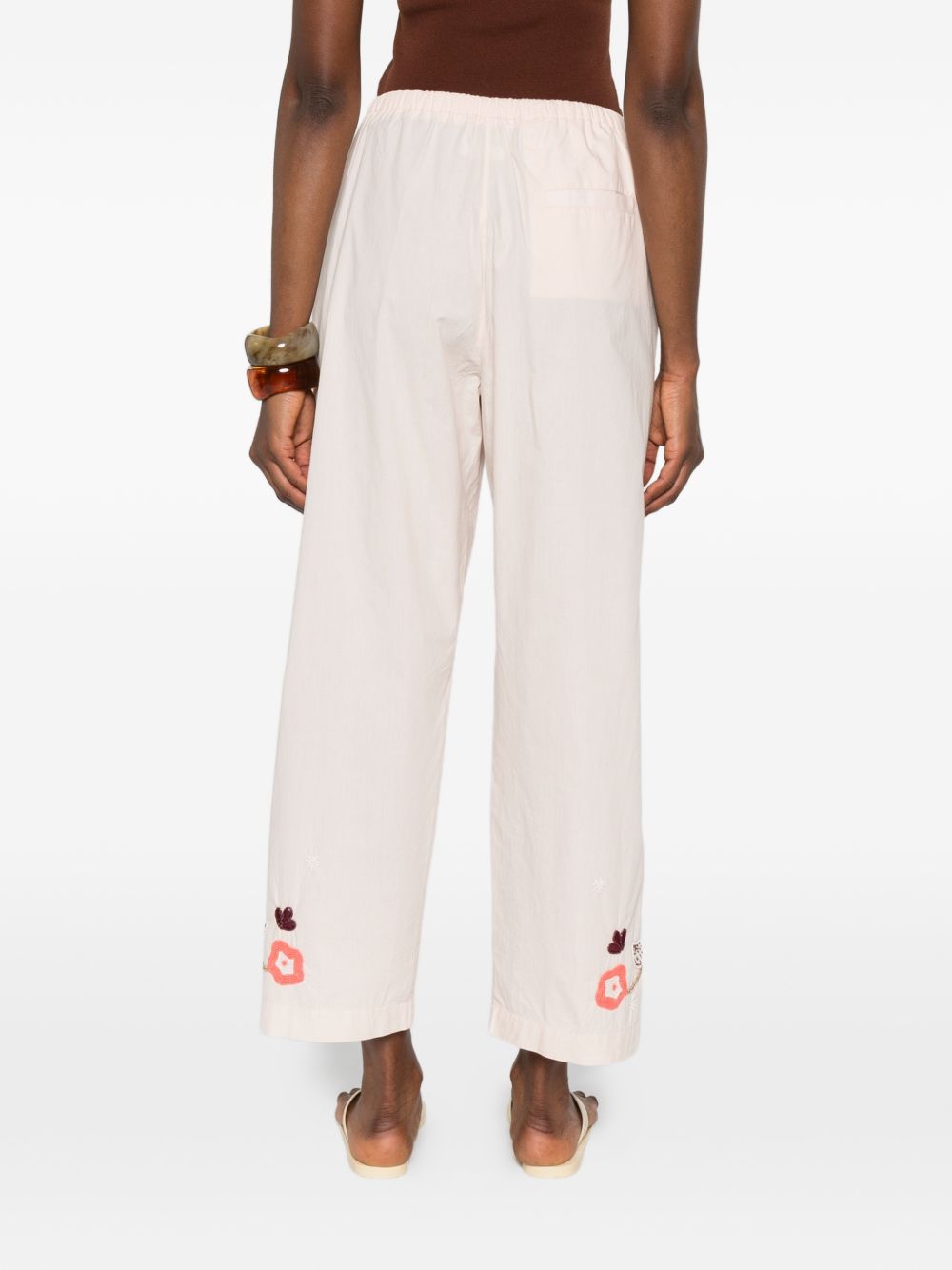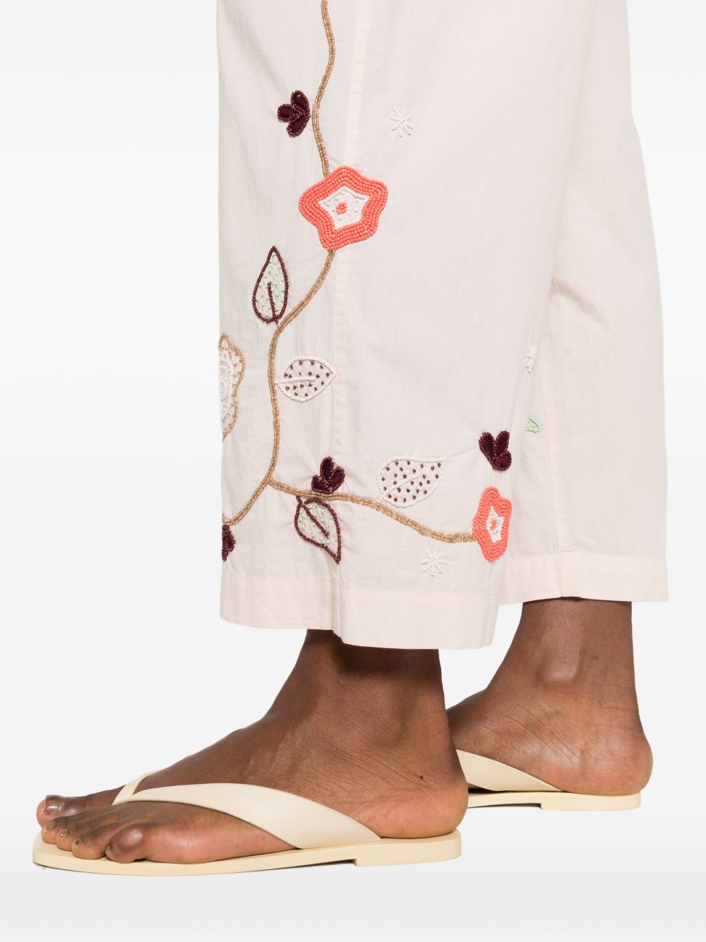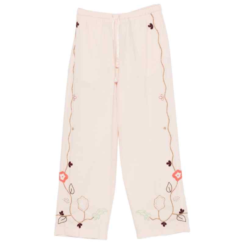 light pink floral embroidery drawstring fastening Embroidered cotton trousers.