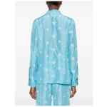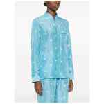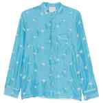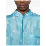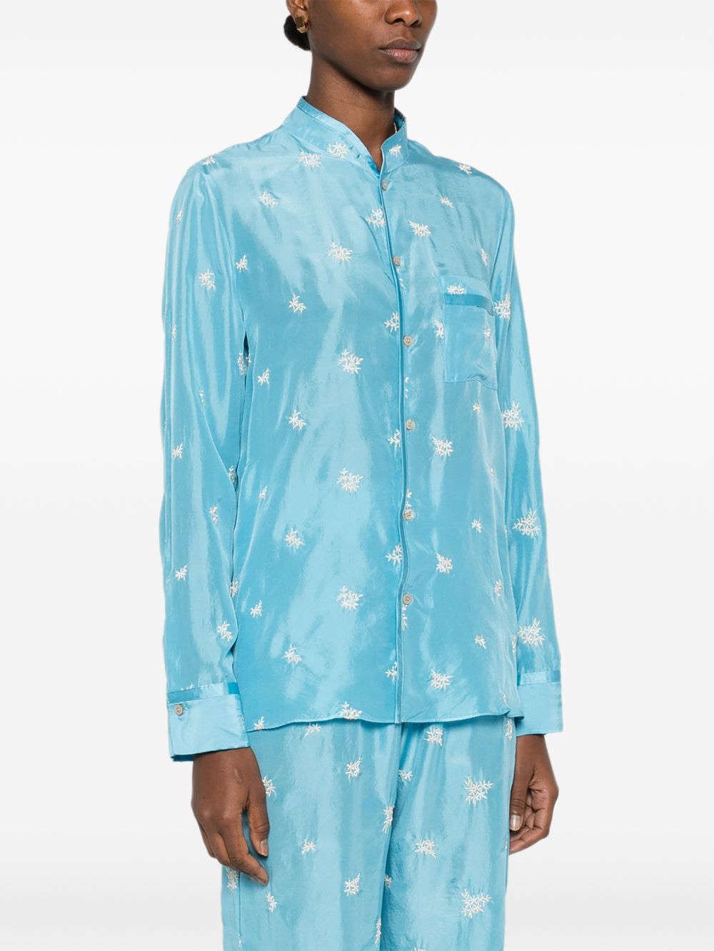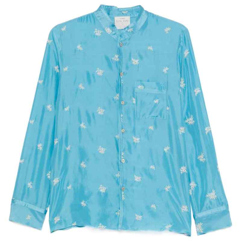 light blue floral print chest pocket button fastening long sleeves Embroidered silk shirt.