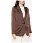 brown peaked lapels single-button fastening front besom pockets long sleeves Single-breasted blazer jacket.