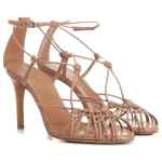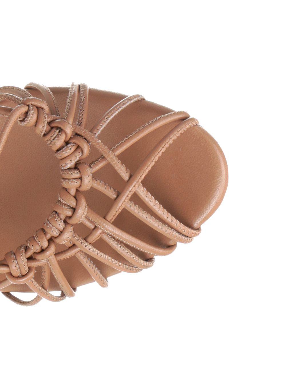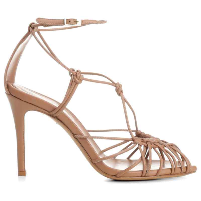 beige knotted detail buckle-fastening strap open toe Leather heel sandals.