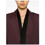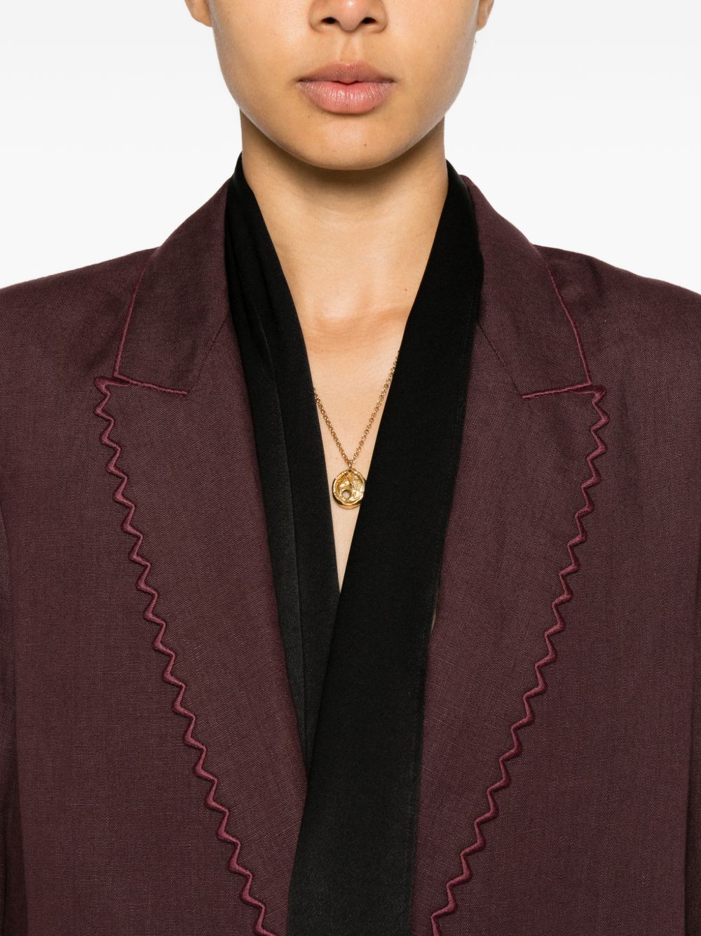 brown scalloped-edge lapels peak lapels front button fastening long sleeves two front welt pockets Linen single-breasted jacket.