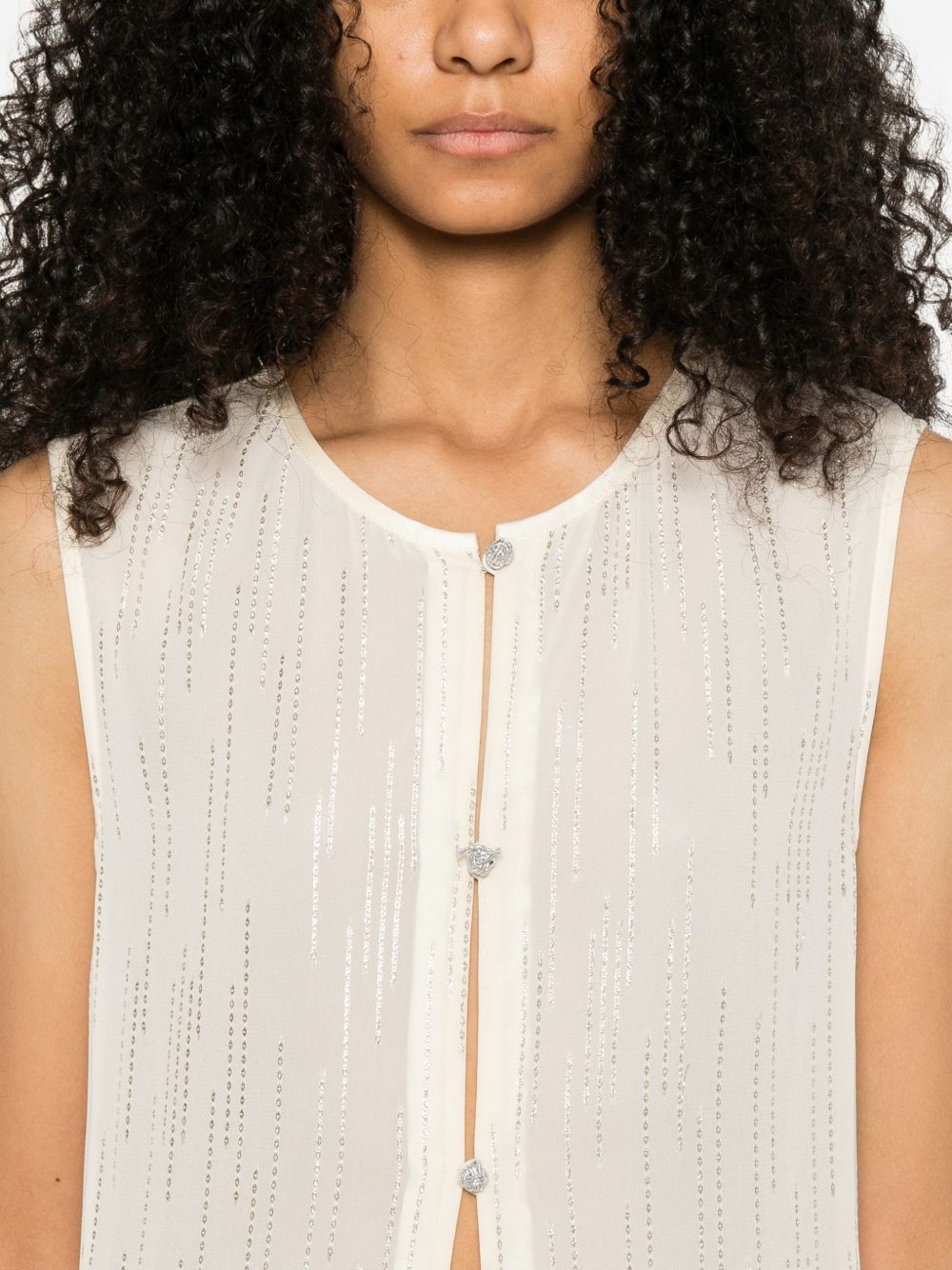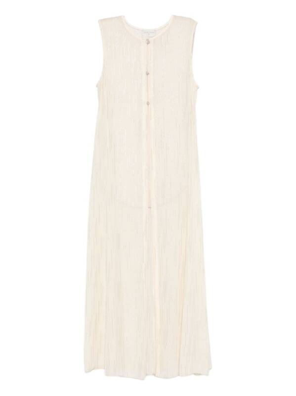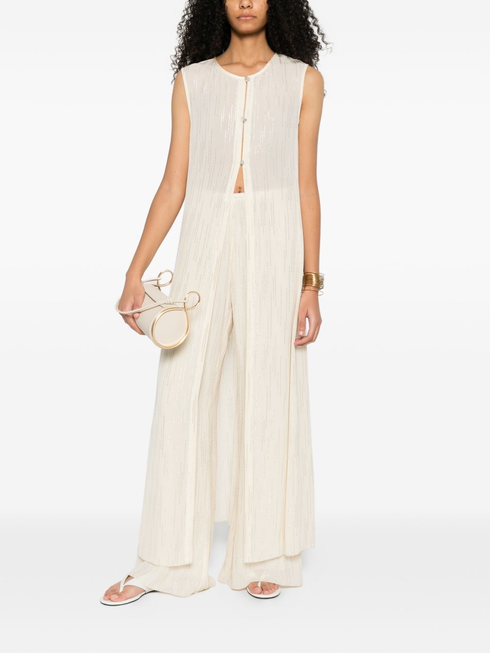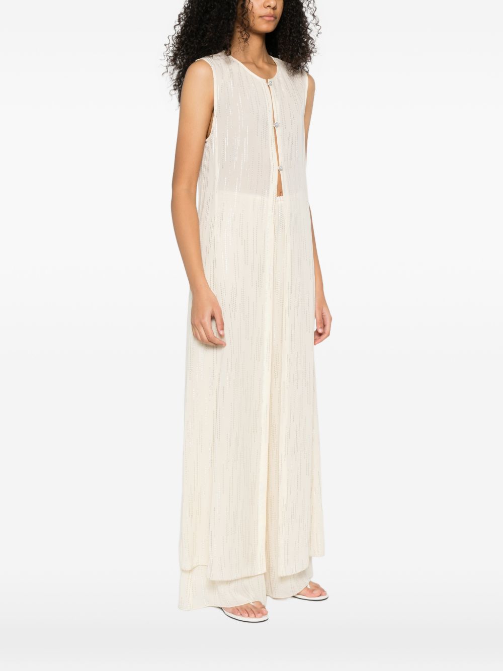 crystal sleeveless button fastening round neck long length relaxed fit Long vest.