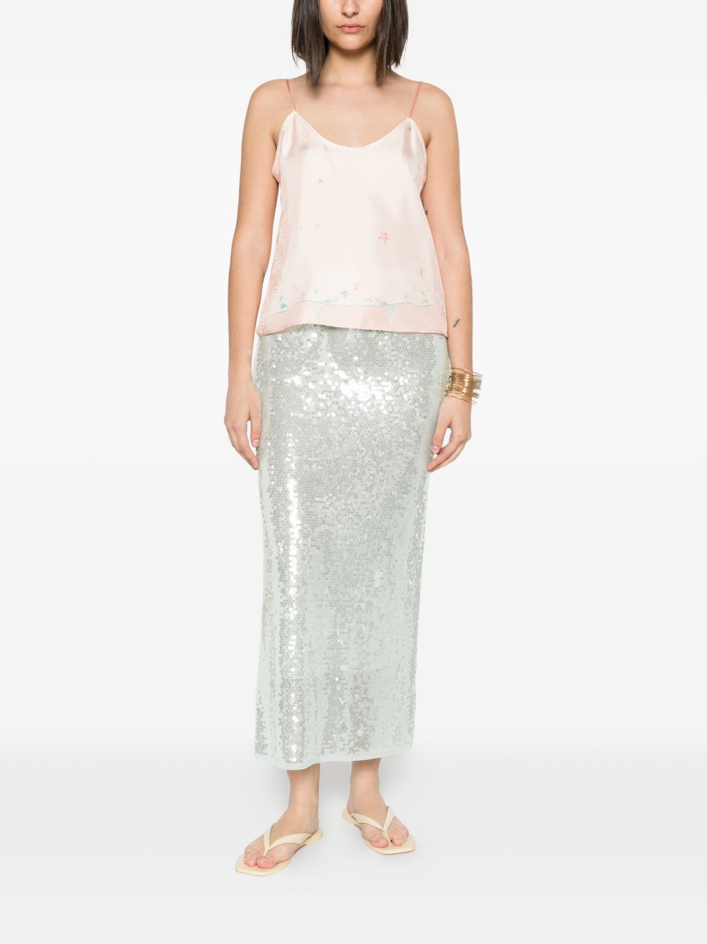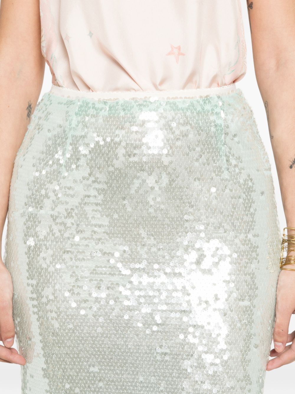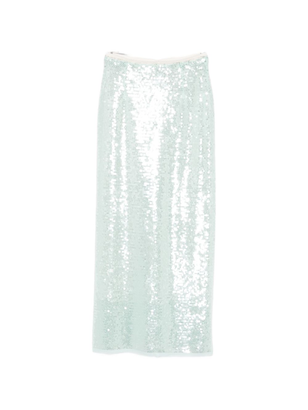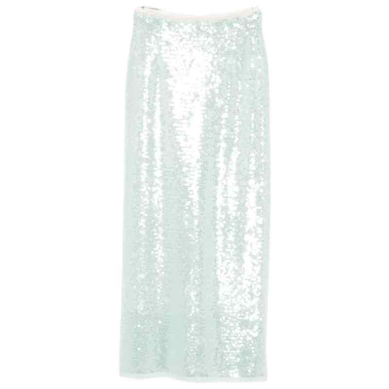 green sequin embellishment elasticated waistband straight hem midi length Sequined long skirt.