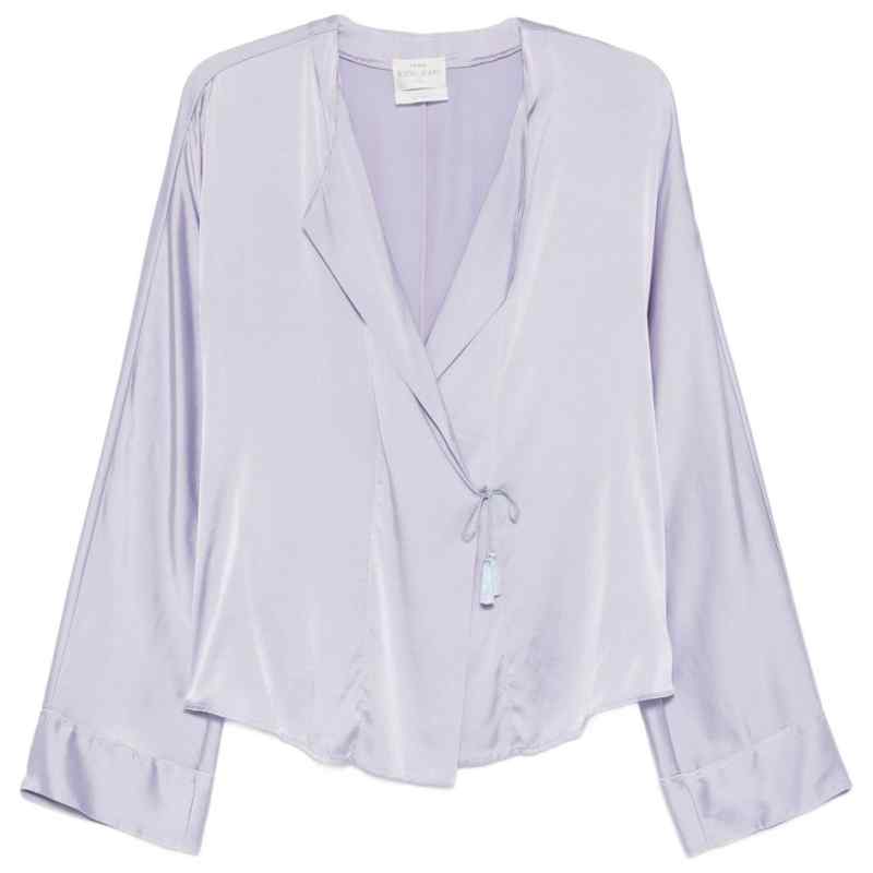 purple tie detail long sleeves v-neck Silk satin shirt.