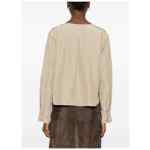 neutrals long sleeves buttoned flap pockets Cotton blend blouse.