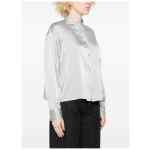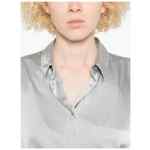silver grey long sleeves front button fastening clasic collar chest patch pocket Silk shirt