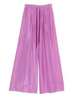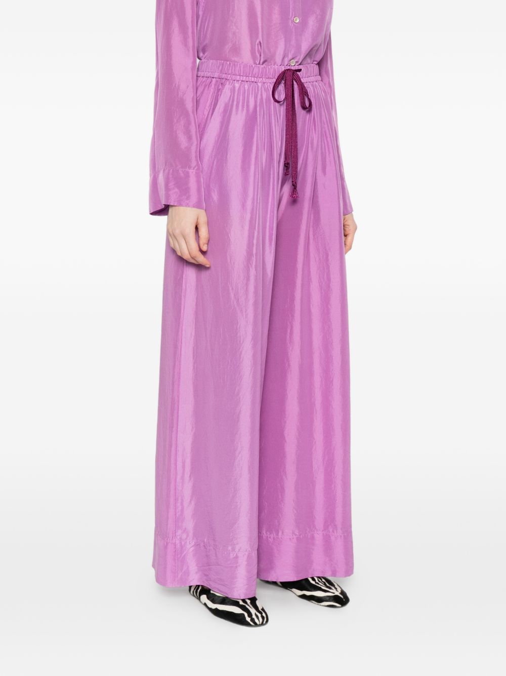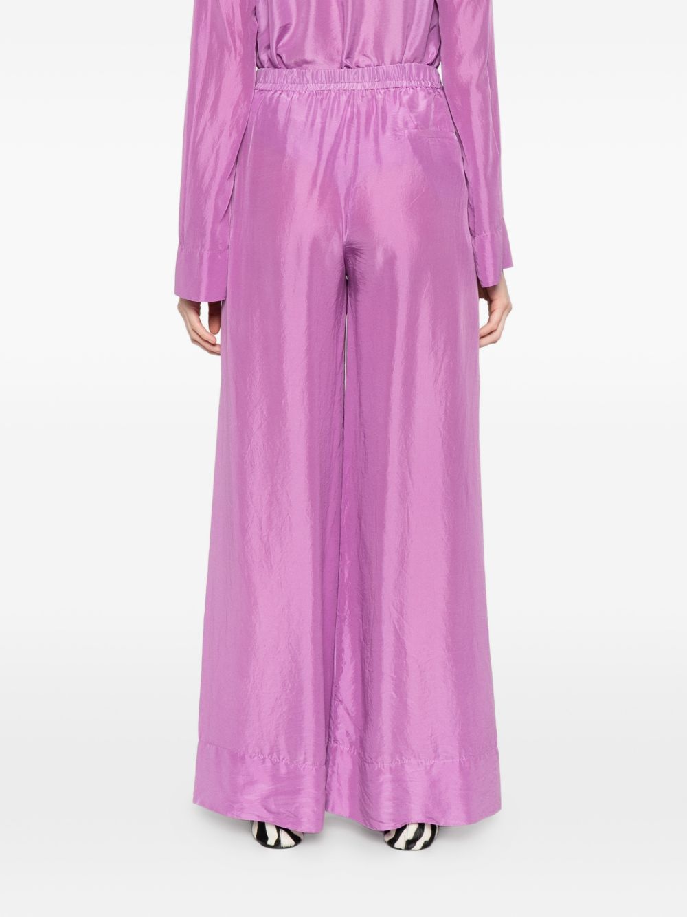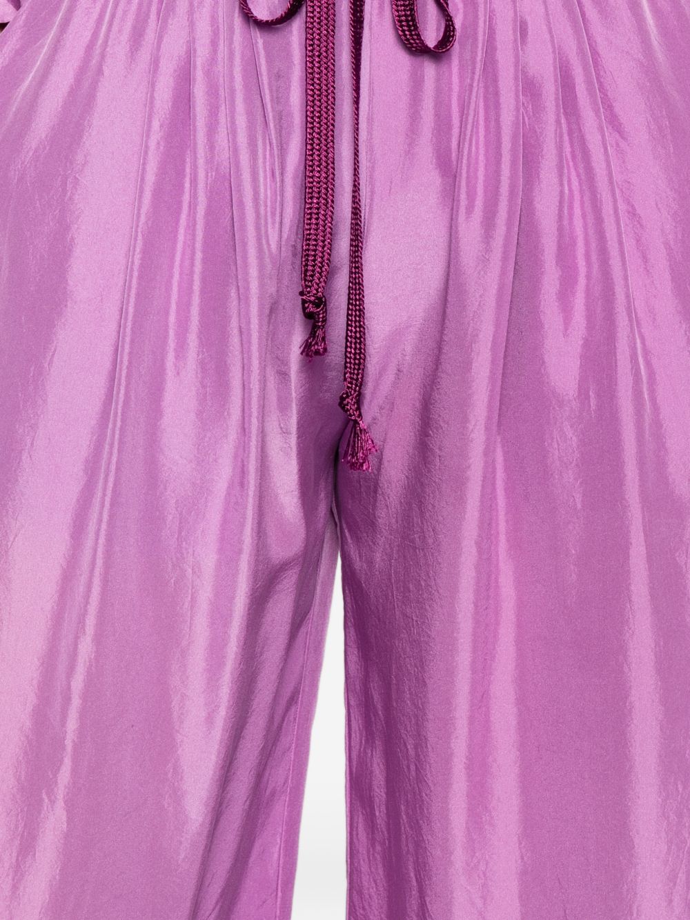 purple drawstring waistband side seam pockets Silk drawstring trousers.