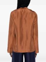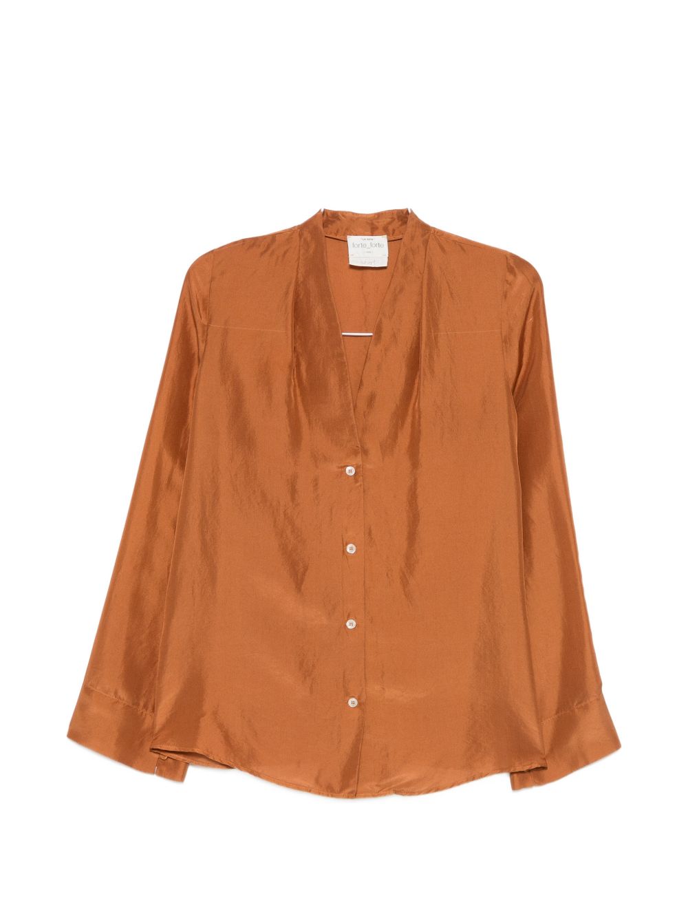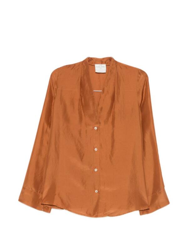 brown silk V-neck front button fastening long sleeves buttoned cuffs straight hem Silk shirt.
