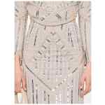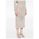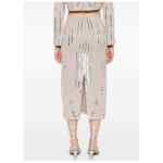 light grey sequin embellishment geometric pattern beaded detail straight hem Embroidered long skirt