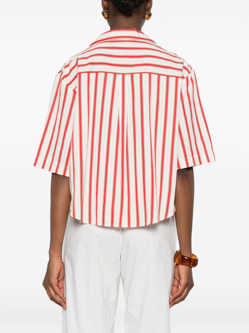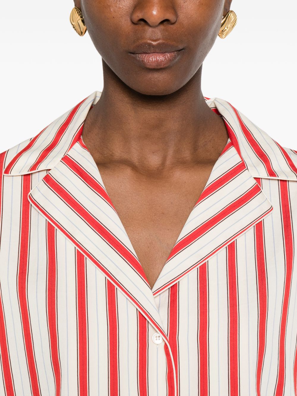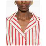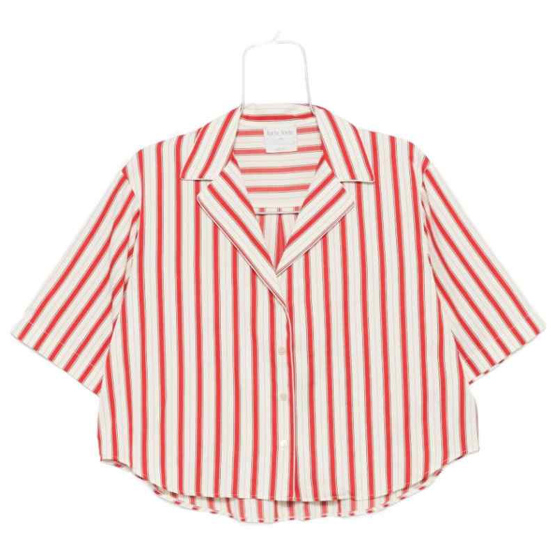 red/beige striped pattern button fastening short sleeves Striped shirt.